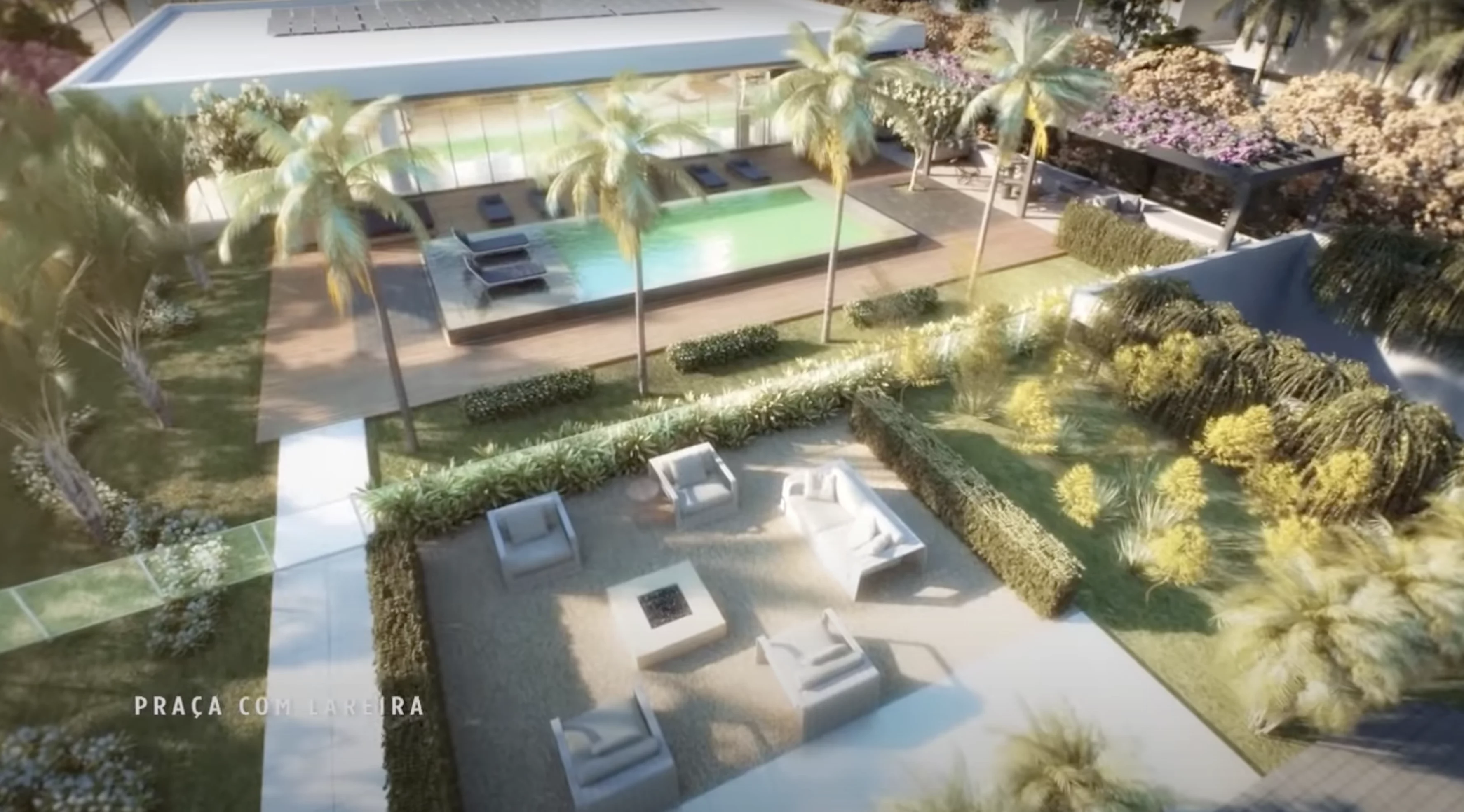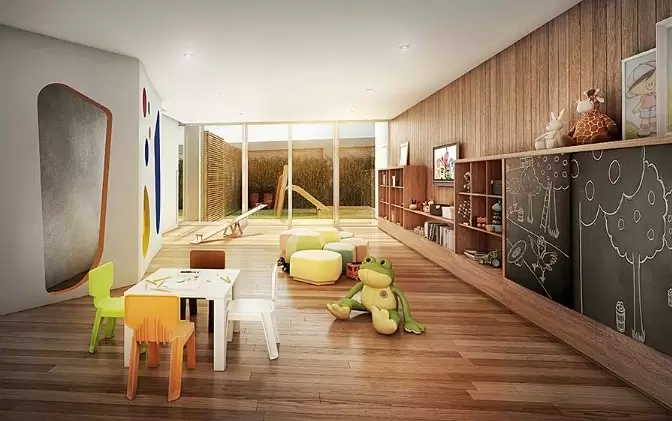 com piscina descoberta climatizada, solarium, salão de festas, spa, praça com lareira, brinquedoteca,