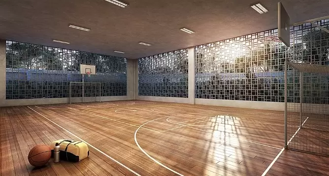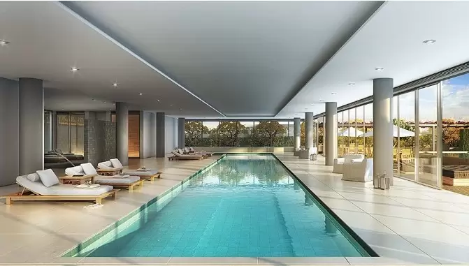 recreativa coberta, piscina coberta com raia olímpica e sala de massagem.