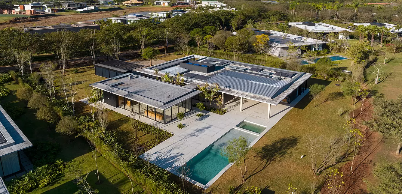 Sports House integra a exclusividade de um projeto contemporâneo com a natureza, planejado para quem valoriza esportes e localizado no Parque dos Esportes da Fazenda Boa Vista. Esta unidade possui 781,92 m² de área coberta em um terreno individual de 3.289 m², com vista para lagos e jardins, além de integração ao novo complexo esportivo da região. Projetada pela Triptyque Architecture, a casa une linhas modernas à harmonia natural ao redor, sendo a escolha perfeita para quem busca conforto e sofisticação.